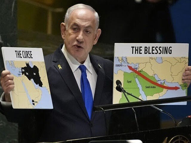 اسرائیل کے وزیر اعظم بن یامین نیتن یاہو نے جنرل اسمبلی سے خطاب کرتے ہوئے کہا کہ سات اکتوبر کے حماس کے حملے کے بعد سے اسرائیل لبنان سمیت کئی محاذوں پر اپنے دفاع کے لیے مجبور ہوا ہے۔ اقوامِ متحدہ کی جنرل اسمبلی اجلاس سے خطاب میں نیتن یاہو نے کہا کہ میرا ملک جنگ میں ہے اور اپنی بقا کے لیے لڑ رہا ہے۔ اسرائیلی وزیرِ اعظم نے کہا کہ سعودی عرب اور اسرائیل کے درمیان تعلقات معمول پر آنے کا معاہدہ بہت قریب نظر آرہا تھا کہ پھر سات اکتوبر آ گیا۔ "غزہ سے ایران کے حمایت یافتہ ہزاروں افراد کار ٹرکوں، موٹرسائیکلوں پر اسرائیل میں گھس آئے۔ اور انہوں نے ناقابلِ تصور مظالم کیے۔”انہوں نے کہا کہ میرا تہران کے ‘ظالموںکے لیے ایک پیغام ہے۔ "اگر تم نے ہم پر حملہ کیا تو ہم تم پر حملہ کریں گے۔” اور ایران میں کوئی ایسی جگہ نہیں جہاں تک اسرائیل نہ پہنچ سکے۔ نیتن یاہو نے کہا کہ وہ اس اسمبلی اور یہاں سے باہر دنیا کو یہ پیغام دینا چاہتے ہیں کہ "ہم جیت رہے ہیں۔”اسرائیلی وزیرِ اعظم نے کہا کہ یہ جنگ اب ختم ہو سکتی ہے۔ بس حماس ہتھیار ڈال دے اور تمام یرغمالوں کو رہا کر دے۔ لیکن اگر وہ ایسا نہیں کرتے تو ہم فتح حاصل کرنے تک لڑیں گے۔ اس کا کوئی متبادل نہیں ہے۔