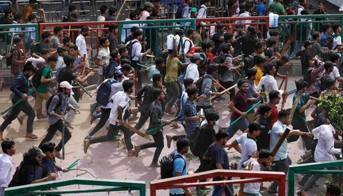 بنگلادیش میں حسینہ واجد کی حکومت کے خلاف عوامی احتجاج کے دوران چھاترا لیگ کے لوگوں نے یونیورسٹی کیمپس میں طلبا مظاہرین پر حملے کیےتھے۔