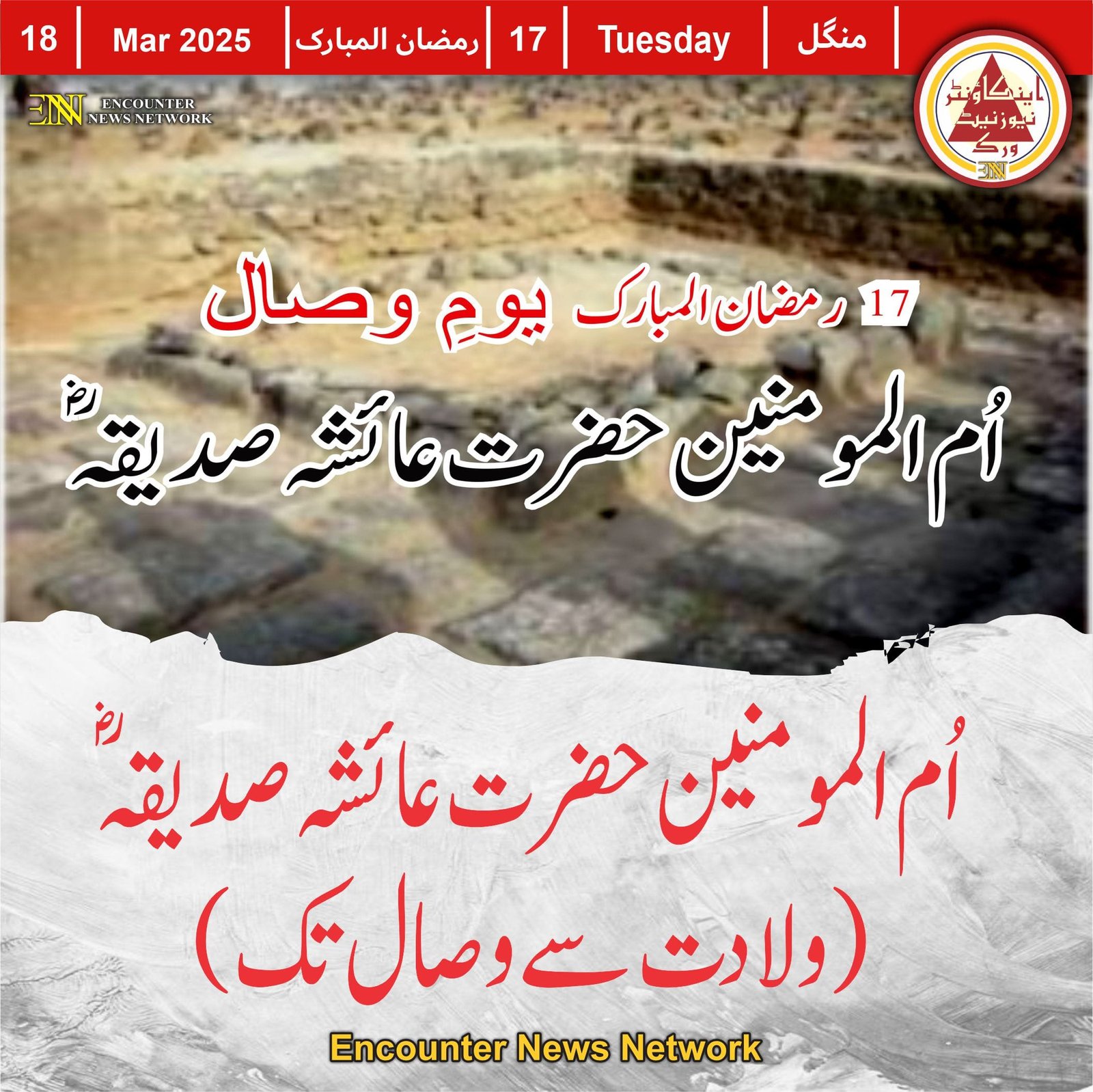آج ام المومنین، صدیقہٗ عالم جنابِ عائشہ کا یوم وفات ہے، آپ نے 17 رمضان 58 ہجری، بروز منگل 66 سال کی عمر میں اس دارِ فانی سے پردہ فرمایا تھا۔