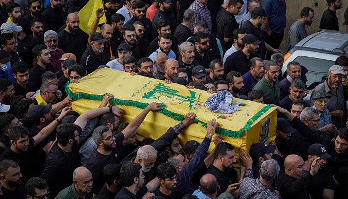 اسرائیلی حملے میں شہید حزب اللہ کے اعلیٰ کمانڈر کی نماز جنازہ ادا، ہزاروں افراد کی شرکت