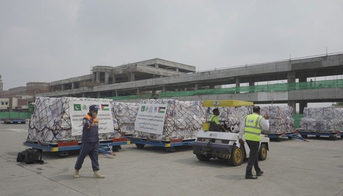 مقبوضہ فلسطین کے علاقے غزہ کے لیے پاکستان کی امدادی کھیپ مصر پہنچ گئی۔