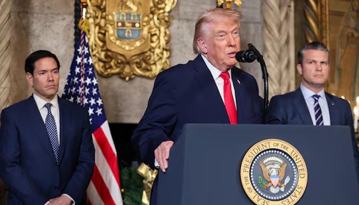 فلوریڈا میں وزیر جنگ اور وزیر بحری امور کے ہمراہ پریس کانفرنس کرتے ہوئے صدر ٹرمپ نے پاک بھارت جنگ رکوانے اوراس جنگ میں طیارے تباہ ہونےکا ذکر کردیا۔