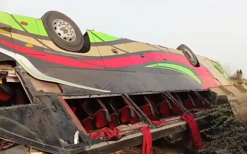 سیہون انڈس ہائی وے پر مسافر بس الٹ گئی، 2 افراد جاں بحق، 30 زخمی