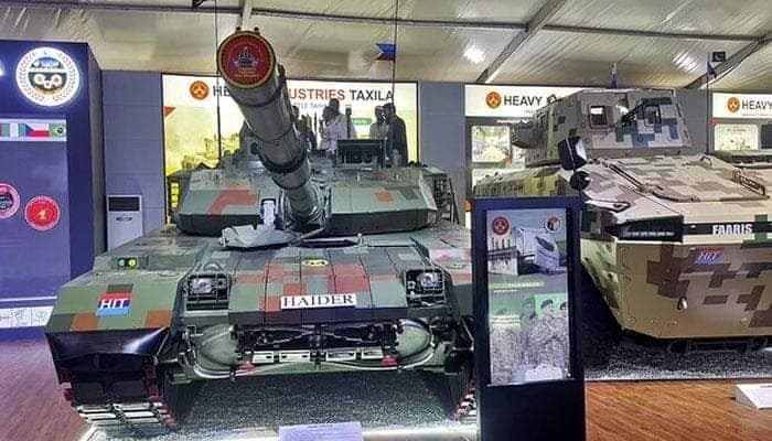 ہیوی انڈسٹریز ٹیکسیلا کی جانب سے کراچی میں جاری دفاعی مصنوعات کی عالمی نمائش آئیڈیاز میں تھرڈ جنریشن کے جدید ترین ٹینک حیدر کو نمائش کیلئے پیش کیا گیا ہے۔