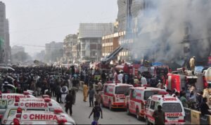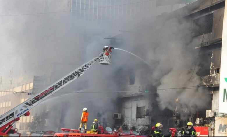 کراچی میں گل پلازہ میں لگی آگ کو 24 گھنٹے ہونے کو ہیں ، تاحال آگ پر مکمل قابو نہیں پایا جاسکا