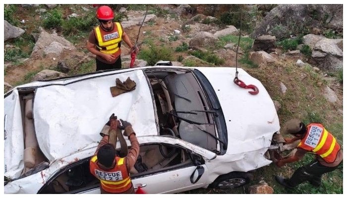 ریسکیو حکام کا کہنا ہے کہ حادثے کی شکار مقامی افراد کی کار کے بریک فیل ہو گئے تھے۔