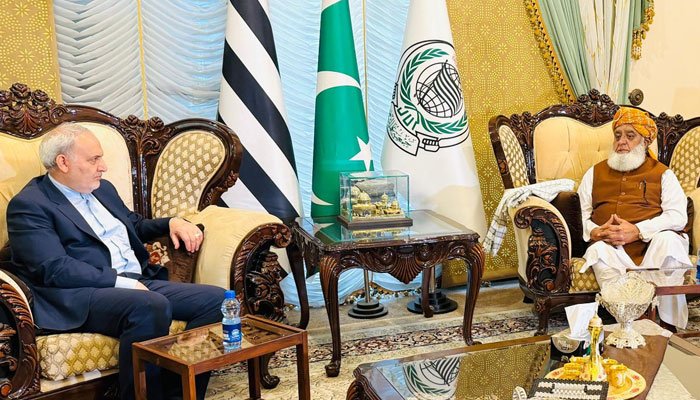 ایرانی سفیرکی مولانا فضل الرحمان کی رہائشگاہ آمد، امریکی جارحیت پر ایران کی حمایت پر شکریہ ادا کیا