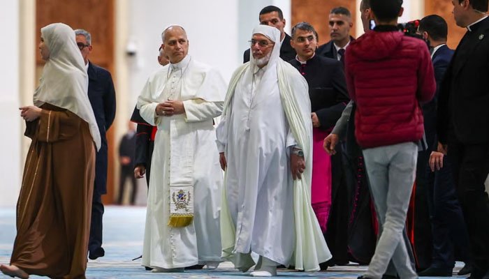 کیتھولک مسیحیوں کے مذہبی پیشوا پوپ لیو نے جوتے اتار کر الجزائر میں جامع مسجد کا دورہ کیا۔