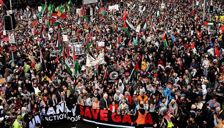 آسٹریلیا میں فلسطین کے حق میں مظاہرہ 90 ہزار افراد کا شدید بارش میں غزہ میں امن کیلئے مارچ
